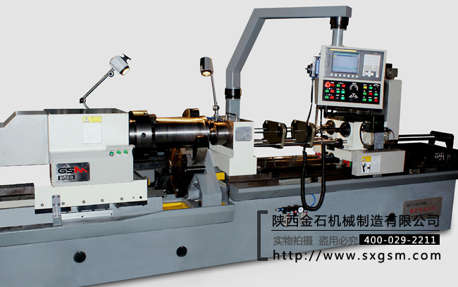 工件裝夾形式:筒體左側(cè)液壓卡盤夾持,筒體右側(cè)液壓中心架夾持,工件可數(shù)控繞軸線分度。