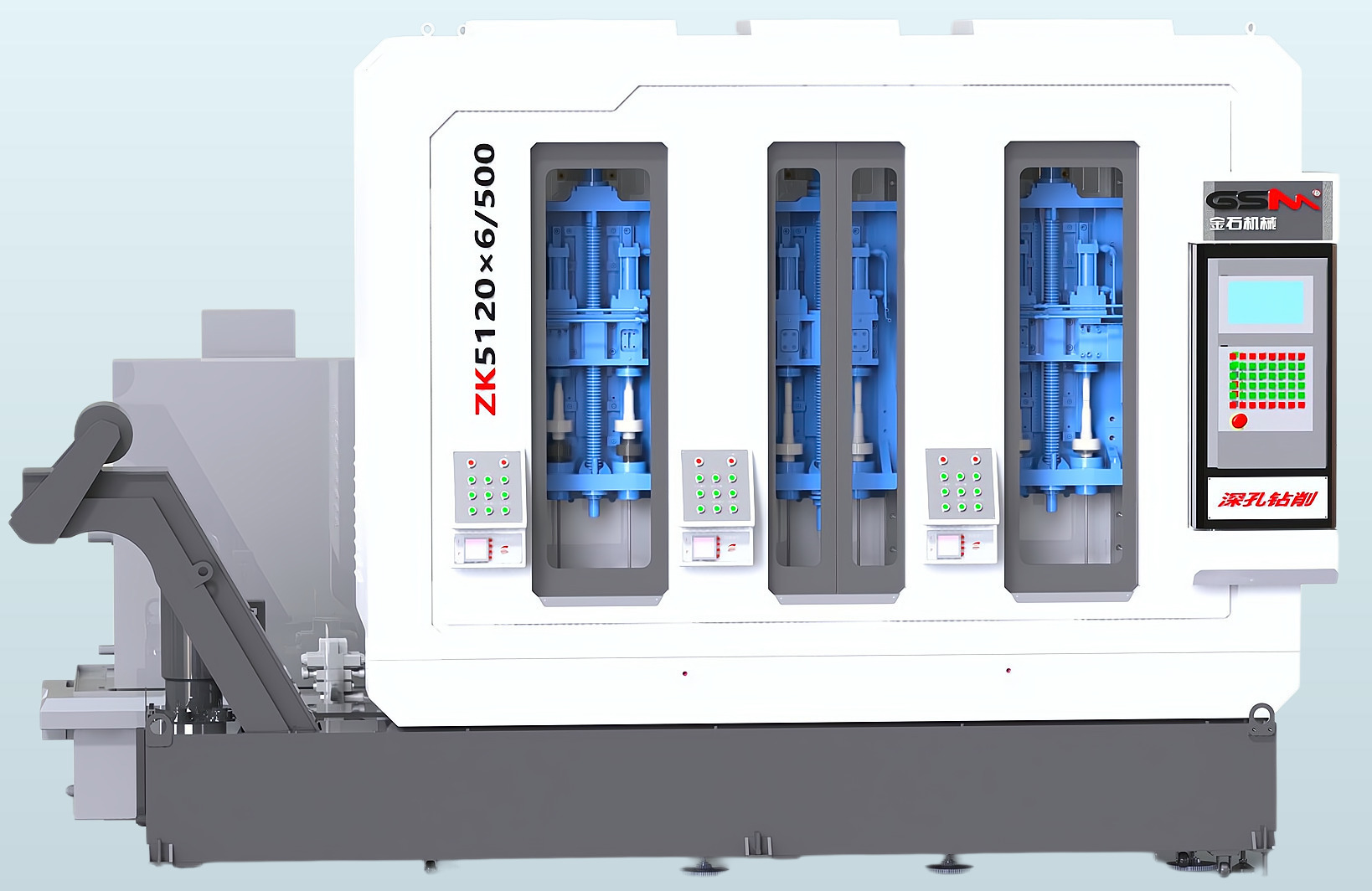 簡要說明:倒立式布局設(shè)計。槍鉆在下,工件在上,從下向上鉆削加工。排屑順暢,占地面積小。根據(jù)主軸軸數(shù)的不同,機床分為獨立的多個加工單元。各加工單元可單獨或同時運動,互不干涉。