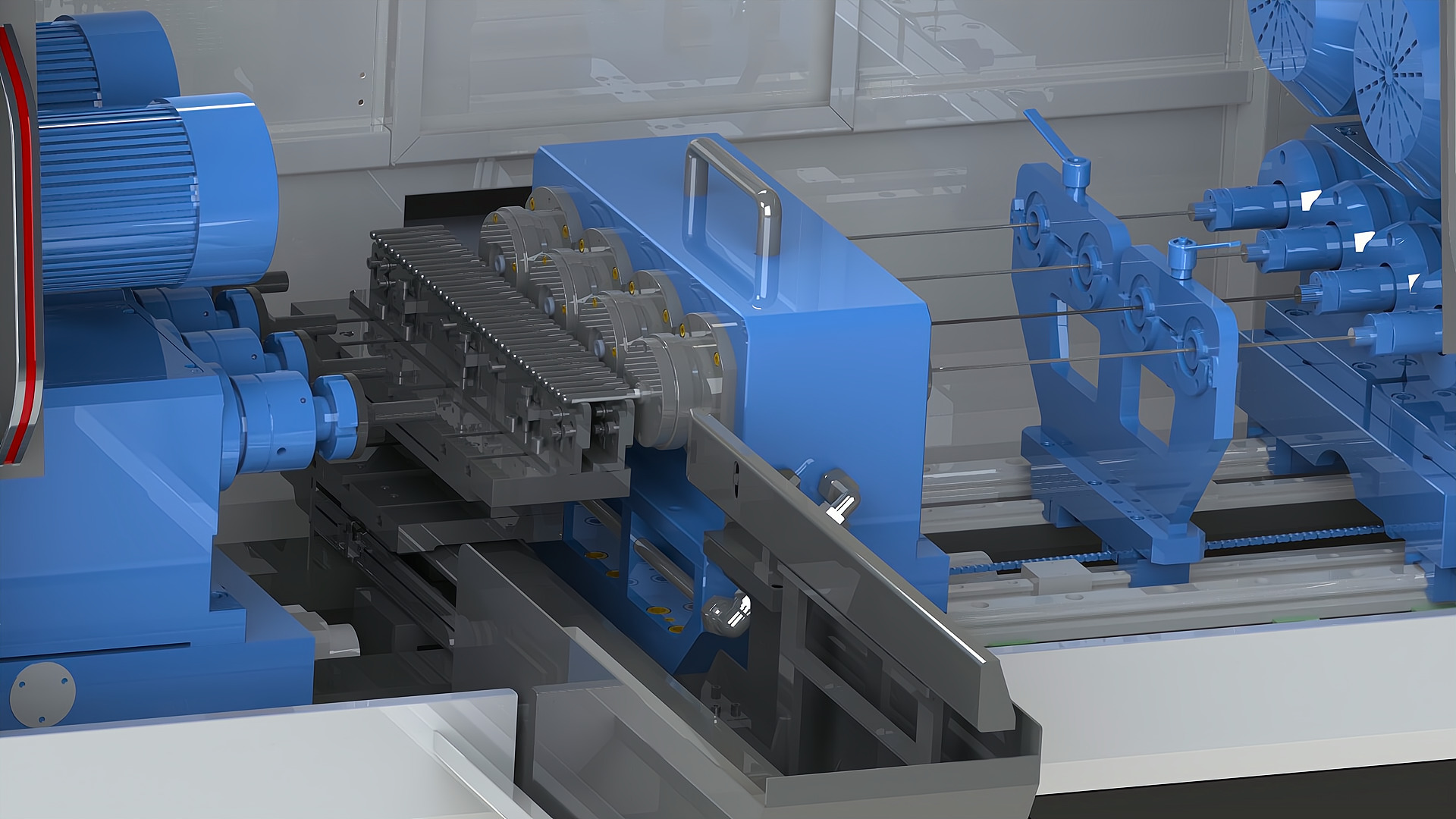 簡要說明: 臥式機(jī)床,含多工位伺服橫移料倉,一次可安裝多達(dá)32支工件。伺服橫移倉,配合液壓頂緊結(jié)構(gòu),完成工件的自動(dòng)夾緊,加工效率高