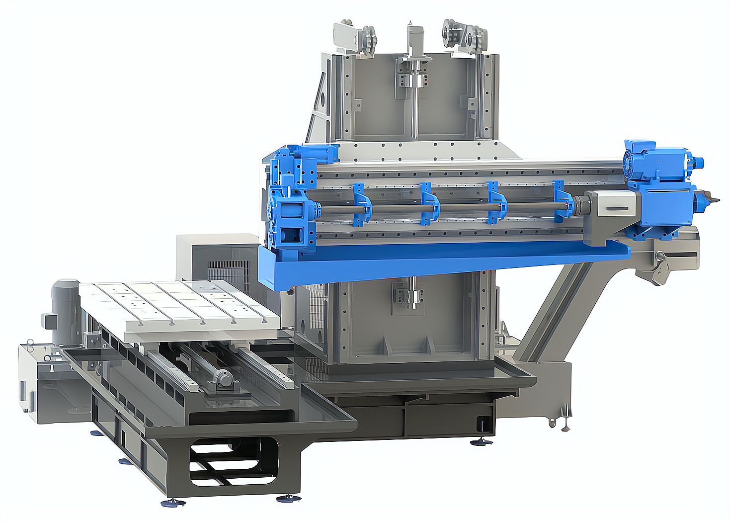 簡(jiǎn)要說(shuō)明: 機(jī)床為水平臥式布置,整體呈T字形布局。機(jī)床主機(jī)各部(工件裝夾部分、鉆削單元部分、立柱部分),均安裝在整體鑄造的床身上,剛性及精度保持性極佳。該型機(jī)床工作臺(tái)承重大,X(工作臺(tái)橫向水平移動(dòng)),Y(橫梁垂直上下移動(dòng)),Z(橫梁上的鉆桿縱向移動(dòng)進(jìn)給)三個(gè)方向的移動(dòng)均為交流伺服數(shù)控控制,使加工孔位置的定位非常方便準(zhǔn)確。
