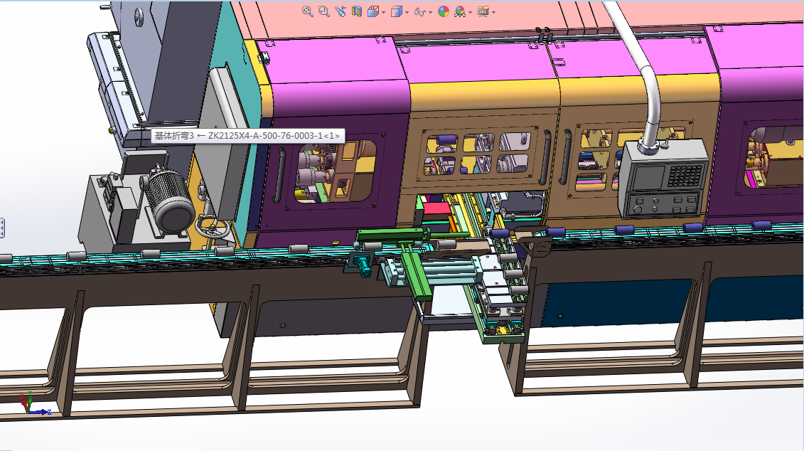 機(jī)床具備四主軸、八工位設(shè)計(jì),工件采用彈簧夾頭通過零件外圓自動(dòng)定位夾緊。機(jī)床配置伺服驅(qū)動(dòng)數(shù)控控制的自動(dòng)往復(fù)升降式上料臺(tái),其料臺(tái)的數(shù)控橫移、升降以及固定的上下料區(qū)域設(shè)計(jì),均可使機(jī)床以極好的適應(yīng)性匹配適宜的如桁架機(jī)械手或六軸機(jī)器人或功能氣缸等自動(dòng)化形式,槍鉆工序的整個(gè)加工過程則在數(shù)控方式下實(shí)現(xiàn)了完全的自動(dòng)化加工。